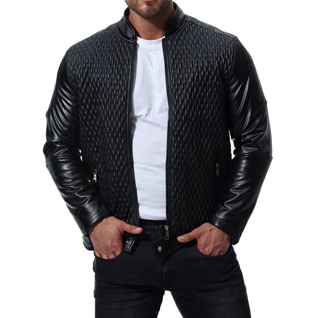 Serving up classic leather bomber jackets asos design is your go to for simple yet stylish pieces while allsaints selected homme and river island offer leather biker jackets with signature embellishment for bringing an edge to your outfit. Best mens v bomber lambskin leather jacket with fox fur collar is a light weigh jacket made by pure lambskin leatherjacket. Mens varsity jacket genuine leather sleeve and wool blend letterman boys college varsity jackets xxs 5xl.